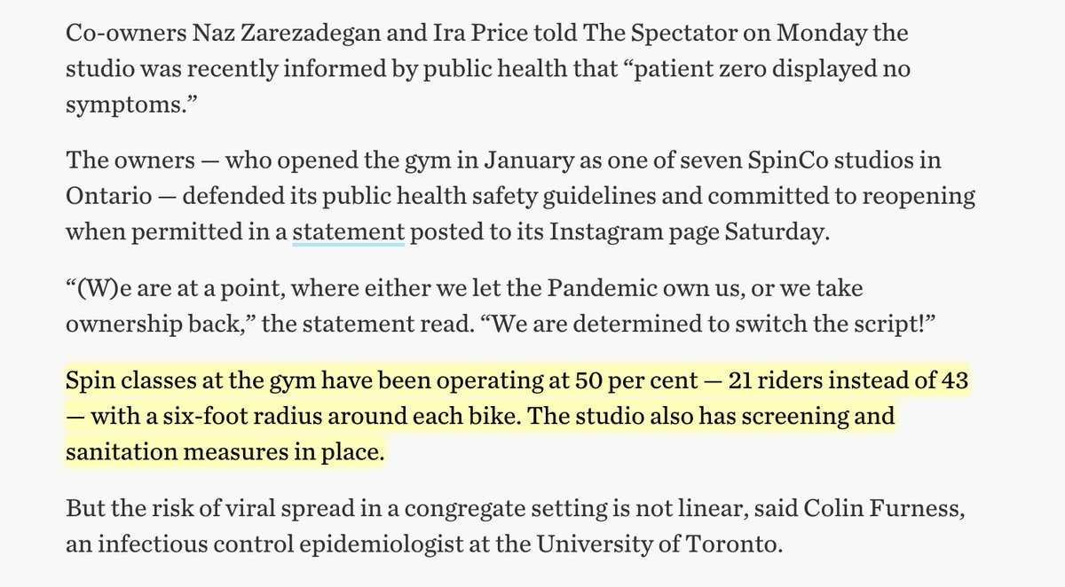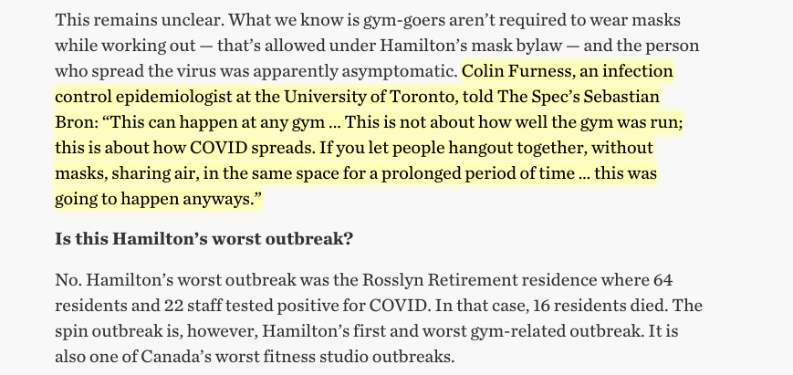 "If they were following guidelines, how did the outbreak happen?" "This remains unclear." Maybe something wrong with guidelines that allow "distanced" people panting indoors on very very very clean bikes? Seems mostly young people but won't always be. https://www.thestar.com/news/canada/2020/10/15/how-were-so-many-infected-everything-you-need-to-know-about-hamiltons-spinco-outbreak.html …pic.twitter.com/5qBwVxEm8k
