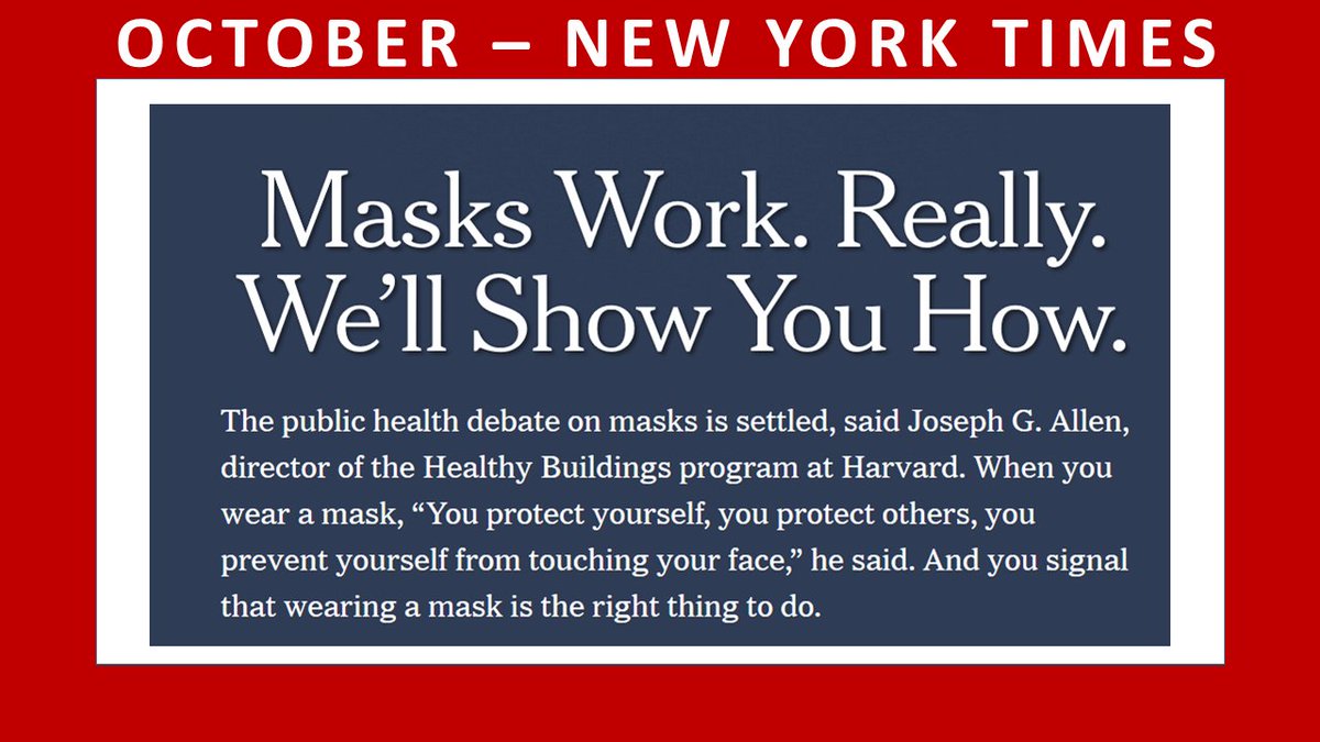 The tragedy of masks, is how all masks got grouped together - N95 + Surgical + cloth masks - muddling attempts of adoption by general population despite all of the evidence. Simple cloth masks save lives.