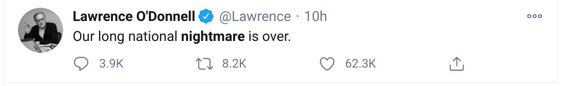 sorry but I don't know ANYONE who's anywhere on the Dem voting spectrum who believes the "nightmare is over" - quite exactly the opposite. Now the hardest work begins. Zeynap, this is a straw person you've set up. I think you're misreading this.