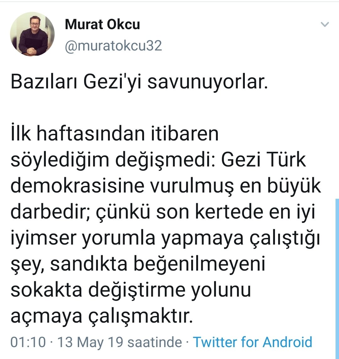 Öyleyse Gezi'nin de dönemin seçilmiş iktidarına karşı @zeynep'in bahsettigi "blok" --yani işlerine gelmediğinde seçimin opsiyonel olabileceğini düşünen insanlar-- gibi hareket eden insanlar tarafından yapıldığı yorumunu yapmak çok yanlış olmasa gerek. Ve bu cidden büyük sorun...pic.twitter.com/tQP7No9gG3
