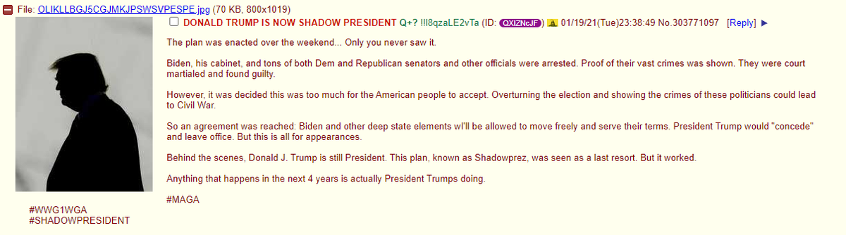 There are competing sociological theories/studies about what happens "When Prophecy Fails"—not a tiny number of people were expecting Trump to declare martial law and arrest the "globalist" cabal, like, today. Adjust, double-down, rationalize, declare we were undeserving?