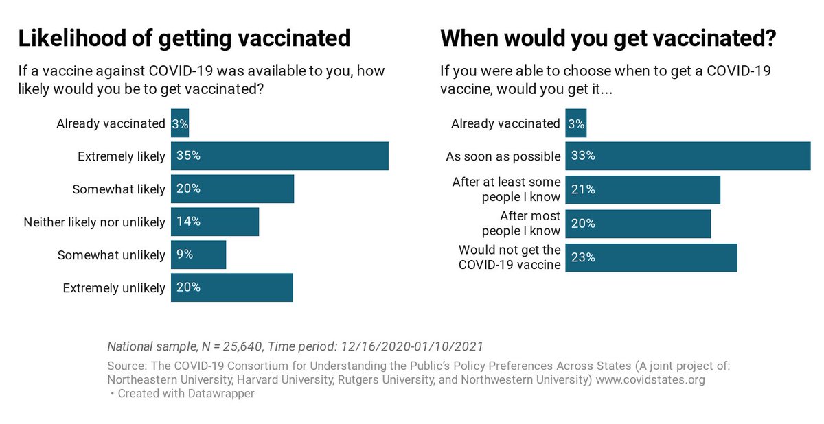First, (consistent with what others have argued) there is a difference between vaccine hesitance and vaccine resistance. Most people do not want to be first in line for vaccines, but the large majority do want to get vaccinated. 20-25% do not want to be vaccinated. 2/11pic.twitter.com/aeaAdHA0sa