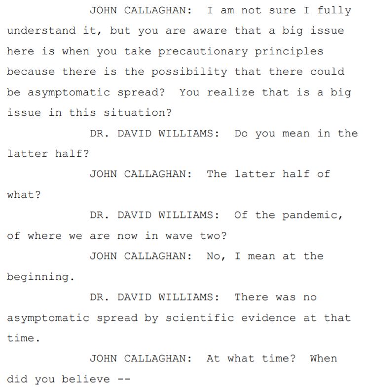 Asymptomatic spread was common knowledge by early February, but here's Ontario's top doctor saying he *didn't believe* in it until later in the summer.