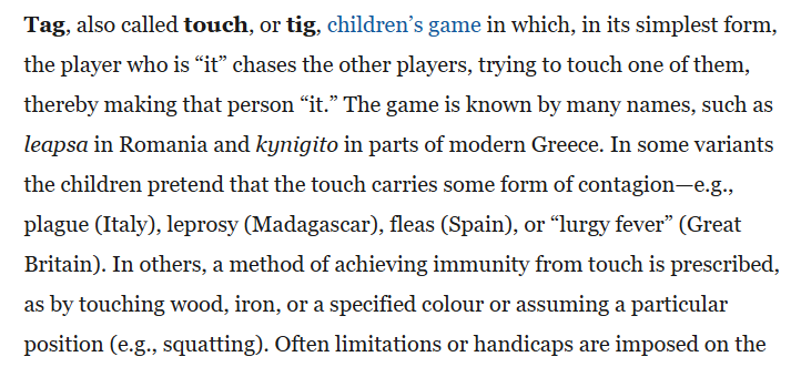 Oh the irony - game of tag coming full circle https://www.britannica.com/topic/tag-game  pic.twitter.com/vZbi2NkZG6