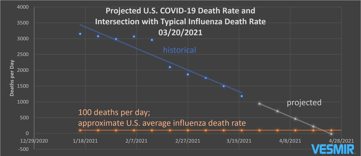 Yes, pandemics do end and the U.S. may leave that phase sooner than many think. The current trend indicates death rates similar to flu as soon as the end of April.pic.twitter.com/0JeHZpHu76