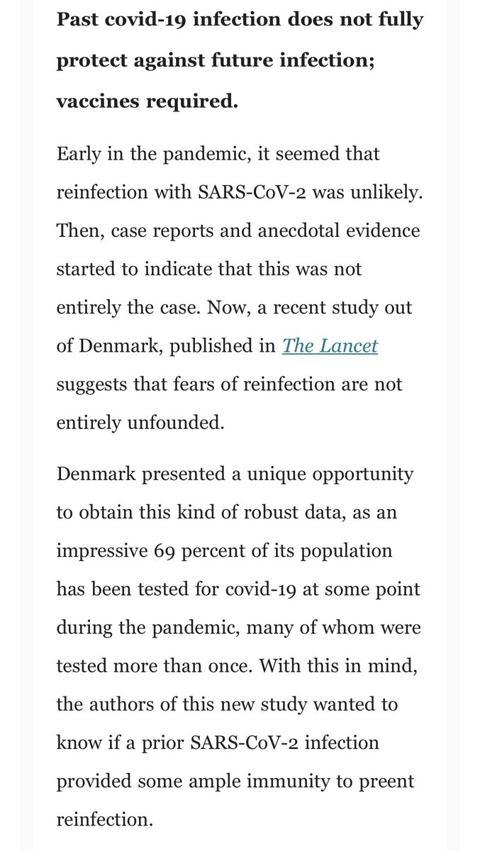 “Past #covid19 infection does not fully protect against future infection; vaccines required.” https://mailchi.mp/4d1f4a95051e/your-daily-roundup-from-brief19-5928284 …pic.twitter.com/SF8Crxvjod
