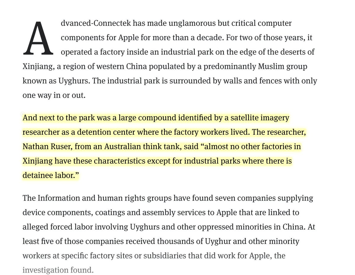 Credible reports of Apple's supply chain being deeply intertwined with, at a minimum, forced labor from the Uyghur minority in China, are increasing. Maybe Apple employees can also put this on their agenda? https://www.theinformation.com/articles/seven-apple-suppliers-accused-of-using-forced-labor-from-xinjiang …pic.twitter.com/KsnOXlQK3J