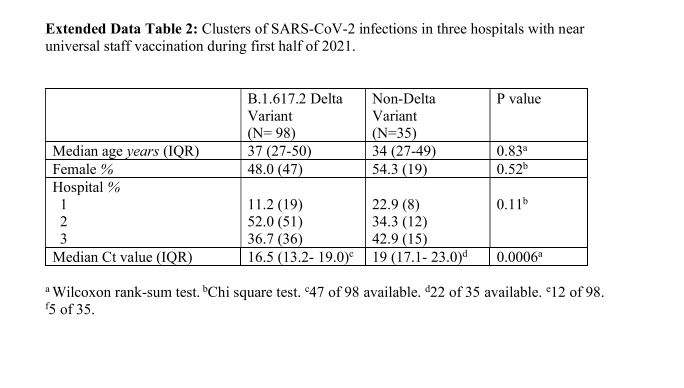 So read the India HCW paper. It's isn't CTs/viral loads in vaccinated vs unvaccinated HCWs—it's CTs/viral loads by variant *among* vaccinated. No doubt some Delta breakthroughs transmit but this doesn't say unvaccinated indistinguishable from vaccinated.+ https://www.researchsquare.com/article/rs-637724/v1 …pic.twitter.com/xaeDZKgOhU