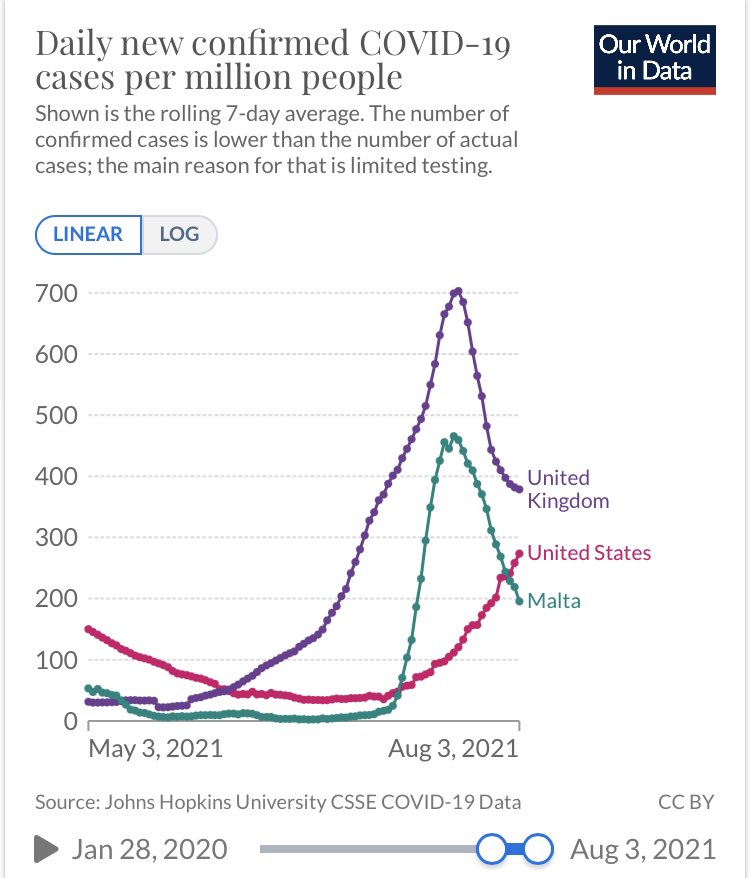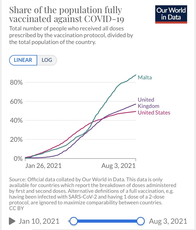 Malta, with 80% fully vaccinated population, experienced a violent delta variant surge despite its vaccination rate, and various African countries managed to control their surges not with vaccines, but with robust and effective NPIs. Higher standards means change in strategy.pic.twitter.com/gwIS4EC4WP