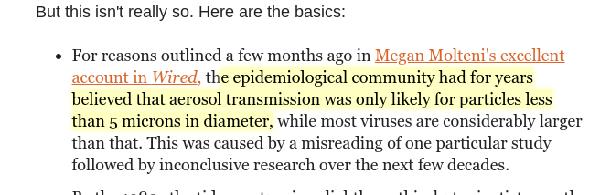 If it is of any help, here are three articles of the many articles on this topic I worked on. It really, really, really isn't one study was misunderstood and then corrected. https://www.nytimes.com/2021/05/07/opinion/coronavirus-airborne-transmission.html … and https://www.thelancet.com/journals/lancet/article/PIIS0140-6736(21)00869-2/fulltext … andhttps://www.science.org/doi/10.1126/science.abd9149 …