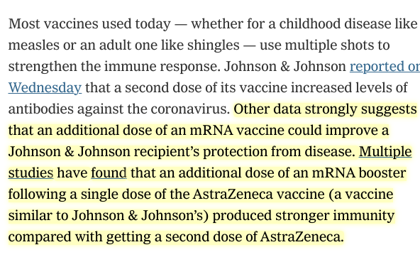 I’ve read data showing better results, especially long term T-cell response, from AZ. Haven’t read as closely on adverse, but those are down in decimal dust compared to benefits. 1 AZ + 1 mRNA may be even better - but all abv ignores: All are better than we expected.