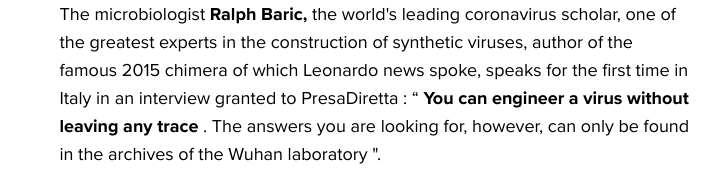 Dr. Ralph Baric, among leading coronavirus scientists, much to lose, honestly:"You can engineer a virus without leaving any trace." @Voxdotcom, OCTOBER 2021, citing a single commentary from way back, March 2020, *twice* to assert what "we know for sure". Why people lose trust.pic.twitter.com/RNILY9RbiL