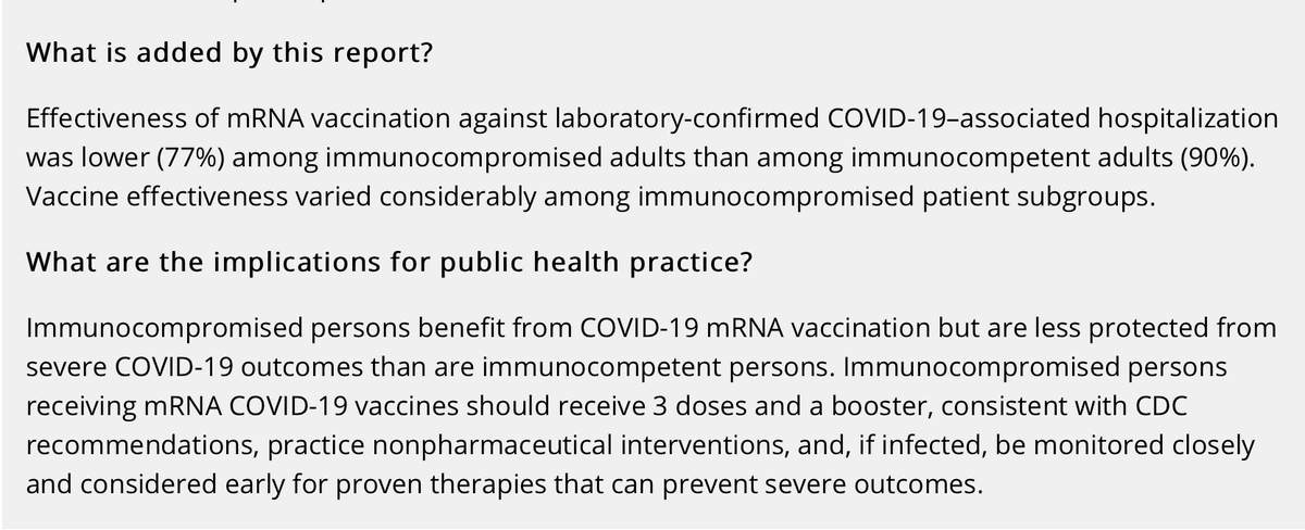 A new CDC study affirms other research findings that immunocompromised (IC) people are less protected by the Covid-19 vaccines than the general population. Among IC people, solid organ or stem cell transplant recipients were less protected than others. https://www.cdc.gov/mmwr/volumes/70/wr/mm7044e3.htm … pic.twitter.com/WacRiEXupr