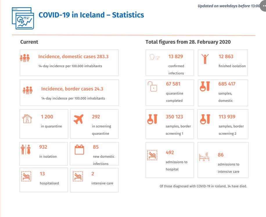Iceland currently has *a total* of two people in intensive care due to COVID, and *a total* of thirteen people hospitalized. They've had four COVID deaths in *all of 2021*. I'm not aware what restrictions are back, but doesn't seem to me like the best example of a clown show. https://twitter.com/venivici27/status/1455646502131572737 …pic.twitter.com/qtEK0iEat4