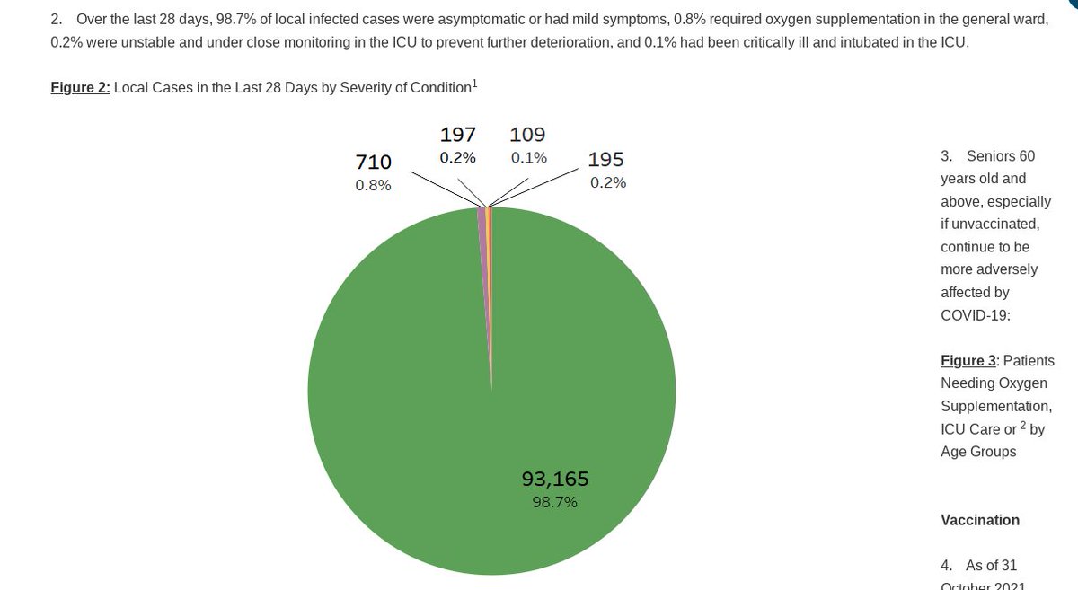 Update on COVID-19 situation (7 Nov 2021): Over the last 28 days, 98.7% of infected individuals had no or mild symptoms, 0.8% required oxygen supplementation in the general ward and 0.3% were in ICU. For full details: https://www.moh.gov.sg/news-highlights/details/update-on-local-covid-19-situation-(7-nov-2021) … pic.twitter.com/SCqUoCs6B2