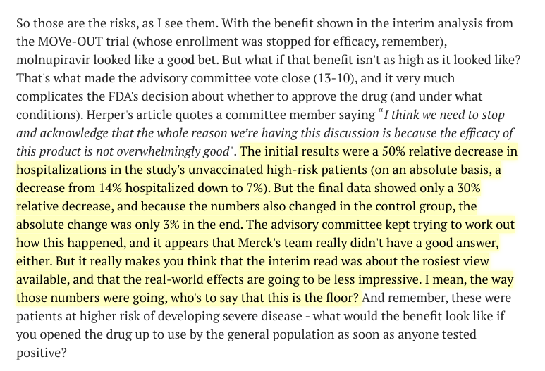Another thread on the risk of sublethal mutagenesis (on the virus, not the human!) from molnupiravir:https://twitter.com/michaelzlin/status/1464424333246447620 …
