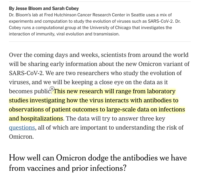 Confused about Omicron? Severity, contagiousness, antibodies and more? What type of data can answer what question, and what we're still waiting for? This is an *excellent* explainer, by @jbloom_lab and @sarahcobey. https://www.nytimes.com/2021/12/12/opinion/covid-omicron-data.html …pic.twitter.com/yOqt5b86qO