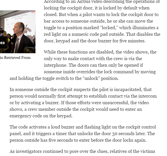 All sorts of safeguards to the locked cockpit door. No simple tech solution to suicidal humans.http://www.nytimes.com/2015/03/27/world/europe/germanwings-crash.html …pic.twitter.com/QFKiDjjb59