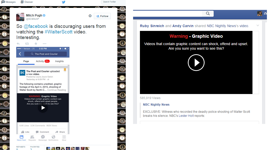So what's going on here? Is it Facebook that's labeling the #WalterScott video like this? Two outlets, same warning.pic.twitter.com/3lGWXTp2jg