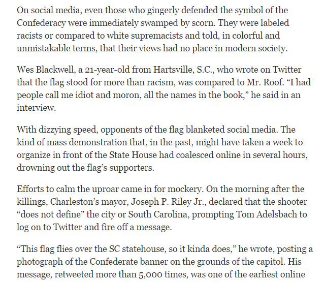On the movement to take down confederate flag. YEAY framing moved away from "online activism". http://www.nytimes.com/2015/06/29/us/how-the-rebellion-against-south-carolinas-confederate-flag-grew.html …pic.twitter.com/BSQ1kCezfk