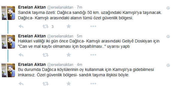 On ballot box relocation in #Turkey's southeast: one village must travel 50km to vote, new security zone bars route. pic.twitter.com/Drwlk5cANF