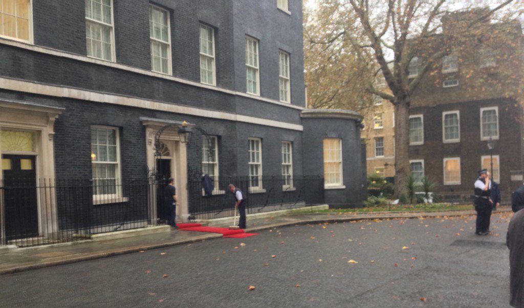 Preparing President Sisi's red carpet at Downing St. But doesn't hide fact that this will be a difficult meeting. pic.twitter.com/XpQflGSmdg