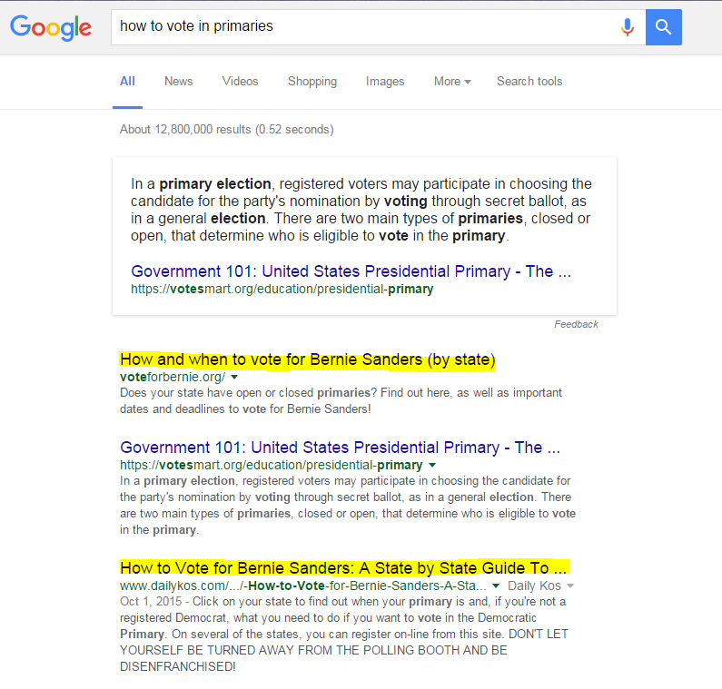 Well. Two of the top three Google results for "How to vote in Primaries" are about Sanders. http://www.politico.com/magazine/story/2016/02/bernie-sanders-army-of-coders-2016-213647 …pic.twitter.com/HFYuvoJ4CX