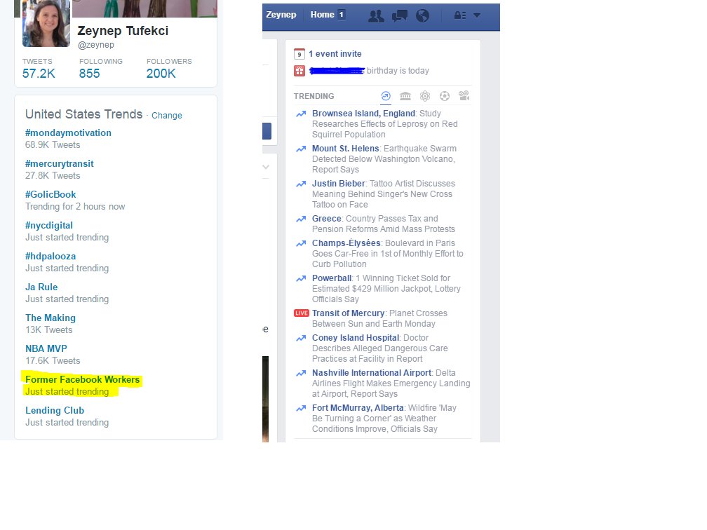 On the right, "Former Facebook Workers" start trending on Twitter. Will it trend on Facebook at all? Anyone?pic.twitter.com/LTHrTjI2YM
