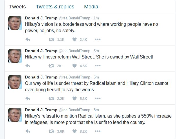 Trump's tweets were pre-recorded. Not actually responsive to the speech.