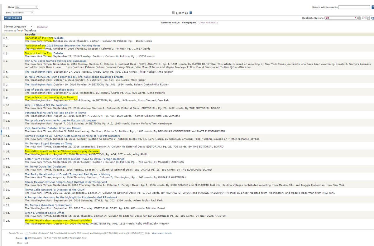 Only 65 pre-election stories for Trump and "Conflict of Interest" from WaPo, NYT & Politico. (Some are debate transcripts or about Clinton).pic.twitter.com/pOXc2Zmajb