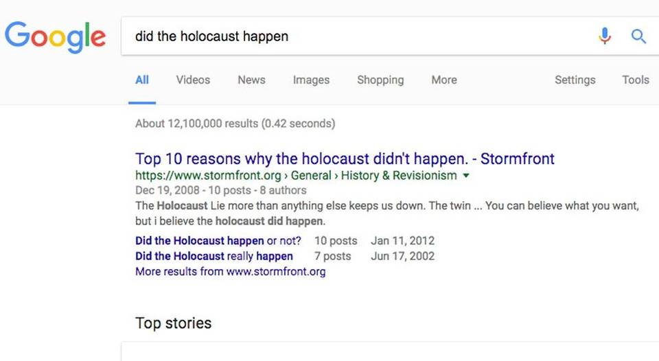 ‘Did the Holocaust happen’? Top search result says no and Google refuses to change it http://www.mcclatchydc.com/news/nation-world/national/article120636803.html#storylink=cpy …pic.twitter.com/PbnGhtvPRE