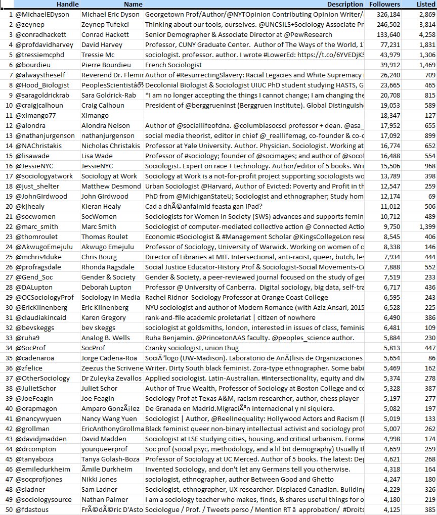 50 most followed sociologists on Twitter