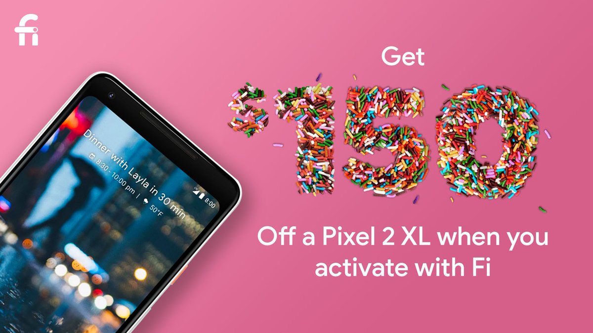 $150 off a Pixel 2 XL when you buy and activate it with Fi. Today only!