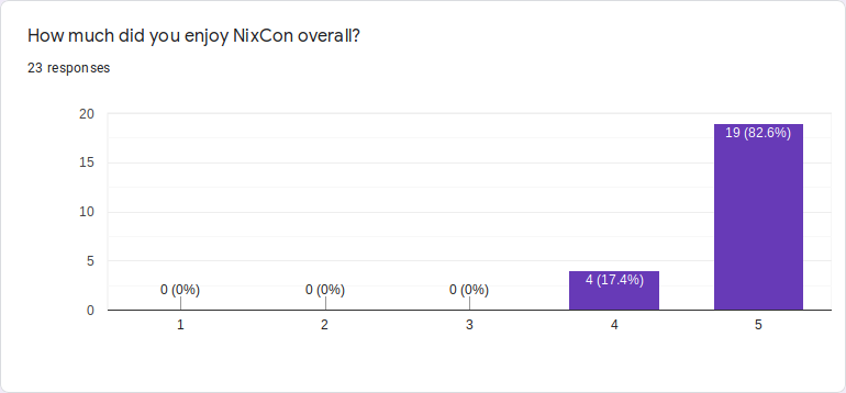 Raw data from our feedback from. People seem to have enjoyed NixCon :)pic.twitter.com/KMFINNq8o5