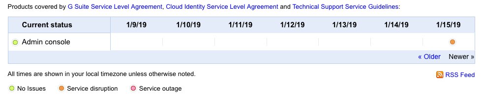 Google Admin is a total disaster. "We are unable to process your request at this time. Please try again later. (Error #1000)" Status page shows they had issues but that the service is up. If it's up, it's barely so. cc/