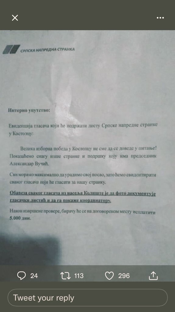 Javljaju nam ljudi iz gradske uprave da su stotine njih dobili nalog da sutra u 7:00 dođu u ovaj objekat. Nihov zadatak će biti da zovu birače i ubeđuju ih da glasaju za liste i kandidate SNSovaca. Dnevnica je 50 evra...pic.twitter.com/X92ns62mwL