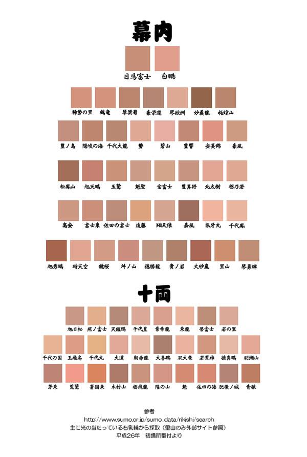 “@zoumotu: 大相撲も負けじと乳輪カラーチャート作ったよー( ´ ▽ ` )ノ #sumo pic.twitter.com/siIh6OMD4X”