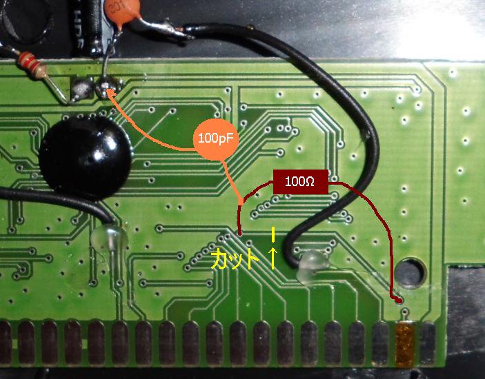 カセット側でΦ2を遅らせる場合はこんな感じで。これでも真っ白画面の場合はコンデンサの容量か抵抗値を増やす、真っ暗の場合は減らすと動くはずpic.twitter.com/5NlppAB7jT